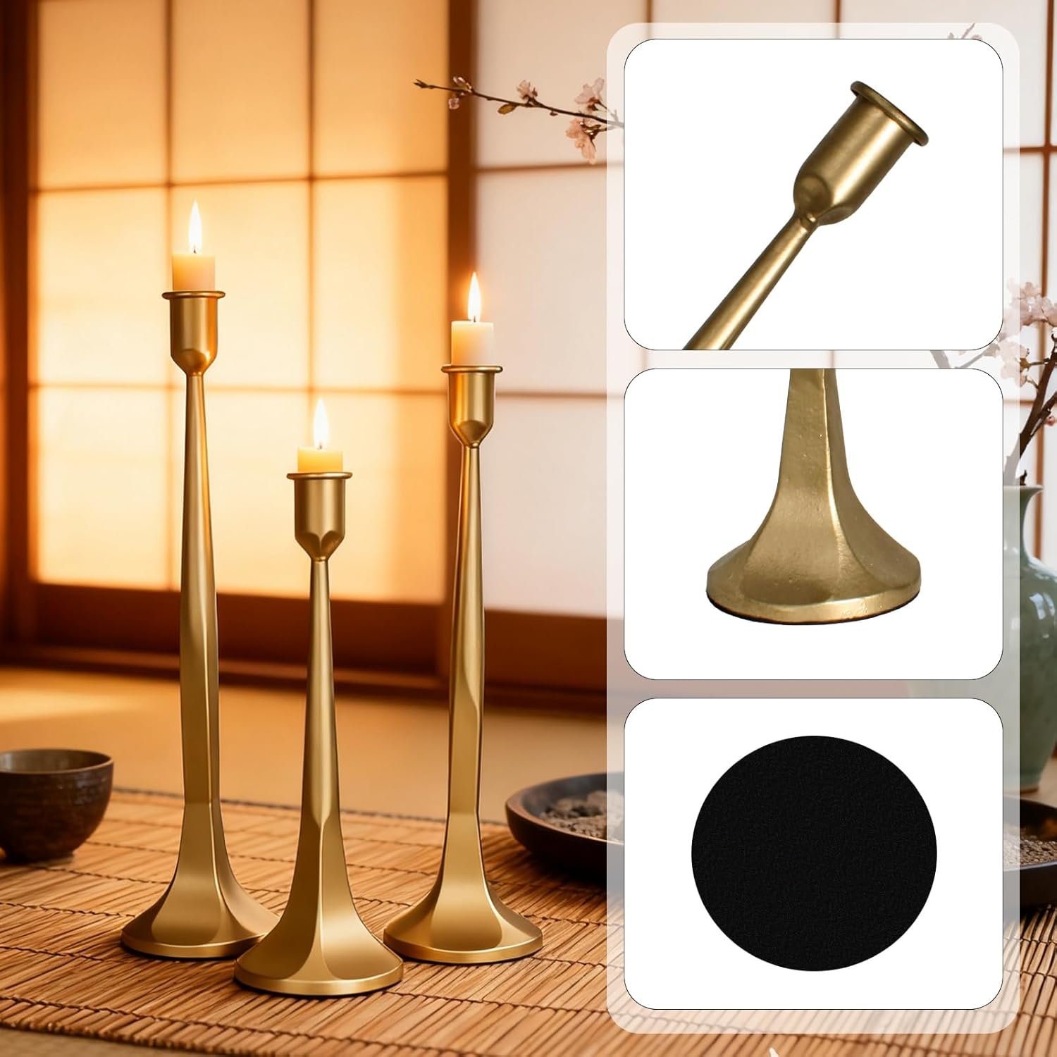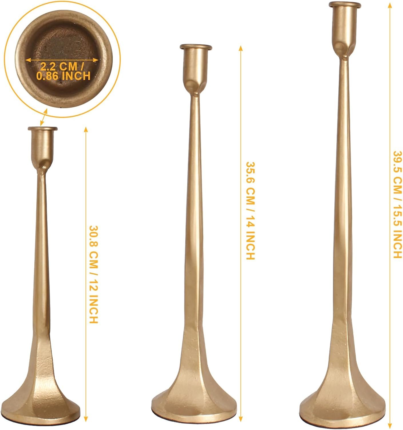 Be the first to review “Set of 3 Gold Iron Candlestick Holders – Tapered Candle Holders for 3/4″ Candles, Tall Candle Stick Set for Dining Table, Wedding, and Home Décor”