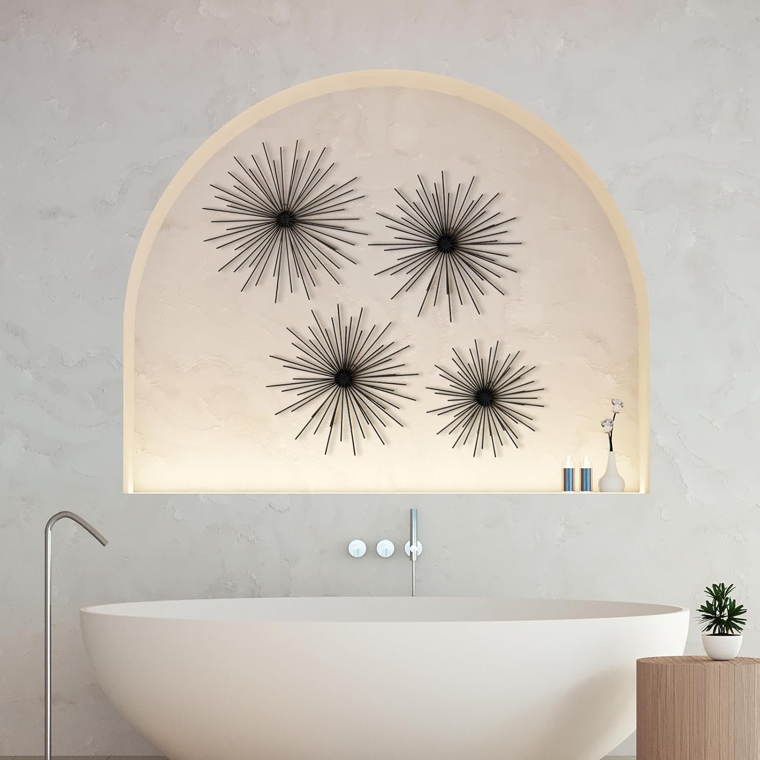 Starburst Wall Decor: this package contains 4 pieces of black metal starburst wall decorations, providing you with multiple decorations at an affordable price; Each set of decorations allows you to decorate multiple spaces or create decorative wall layouts in one area