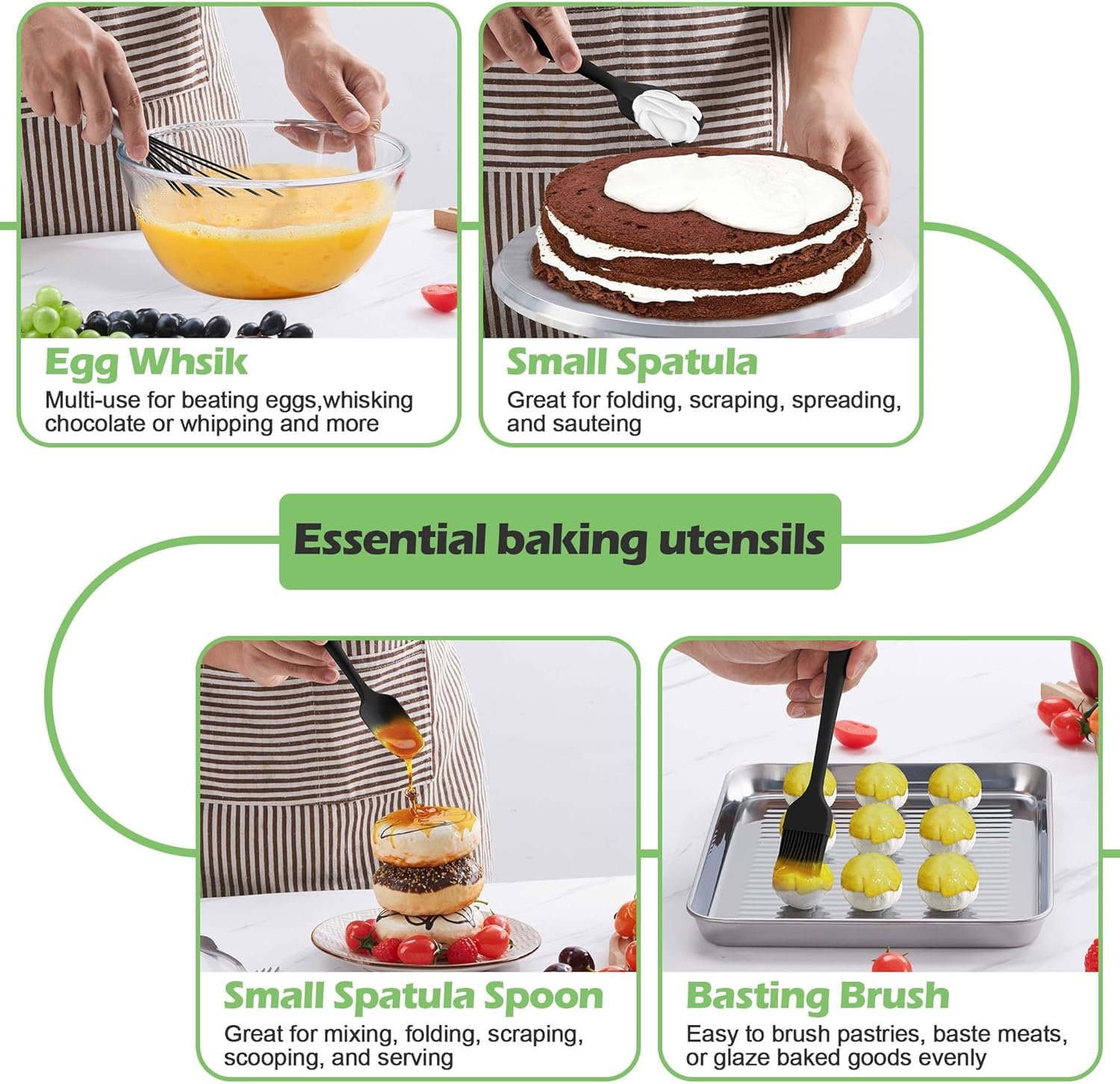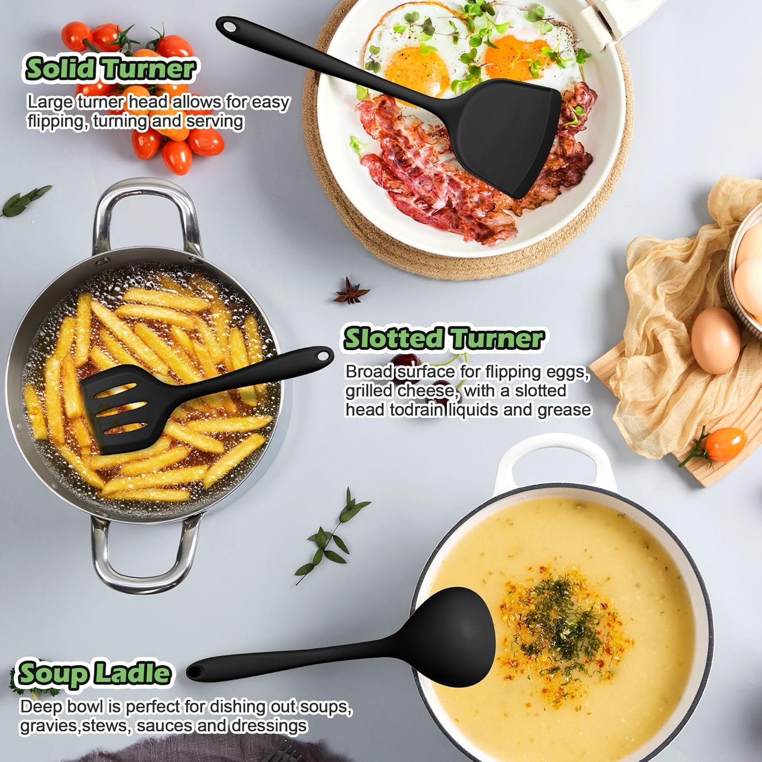 15-Piece black silicone kitchen cooking utensils set includes a large selection of pieces which can meet all your cooking and baking need. Silicone spatula utensils for cooking with beautiful color will be an excellent addition to your kitchen.