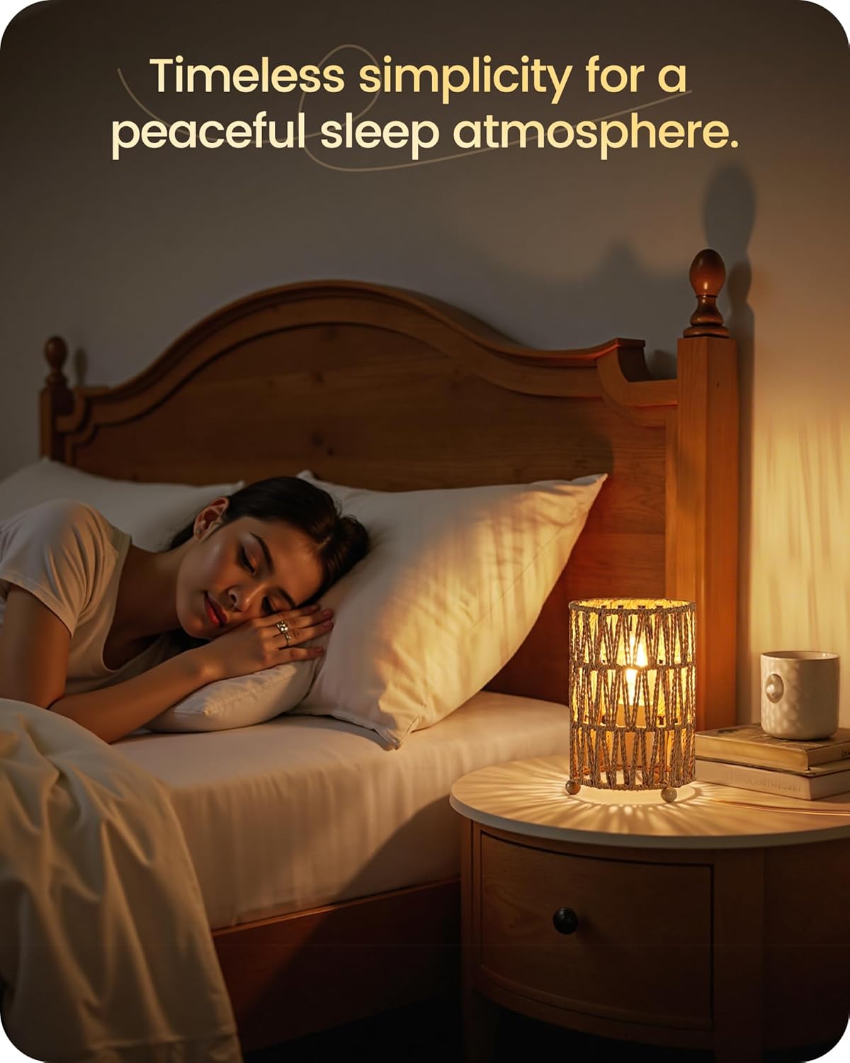 Bohemian Aesthetic: Infused with a hint of carefree Bohemian style, the paper-woven small bedside lamp adds a softness and cozy atmosphere to any room. Even when not lit, bedroom lamps set of 2 serve as a charming decor piece that enhances your home’s aesthetic