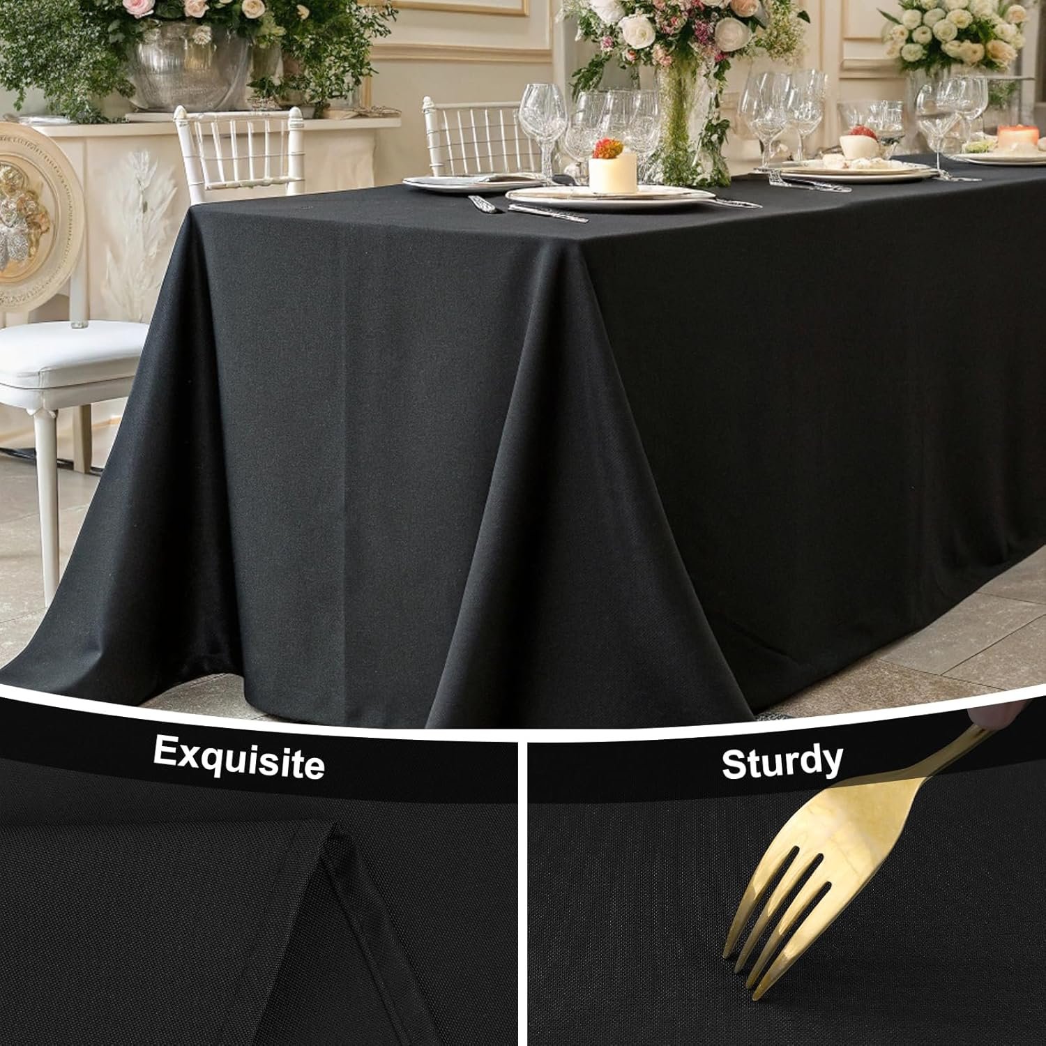 [Reusable & Anti-Scratch] The reusable polyester material makes our table cloths wearable and tearproof. The real fabric tablecloth effectively protect your dining table from scratches and heat, ideal for daily repeated use.