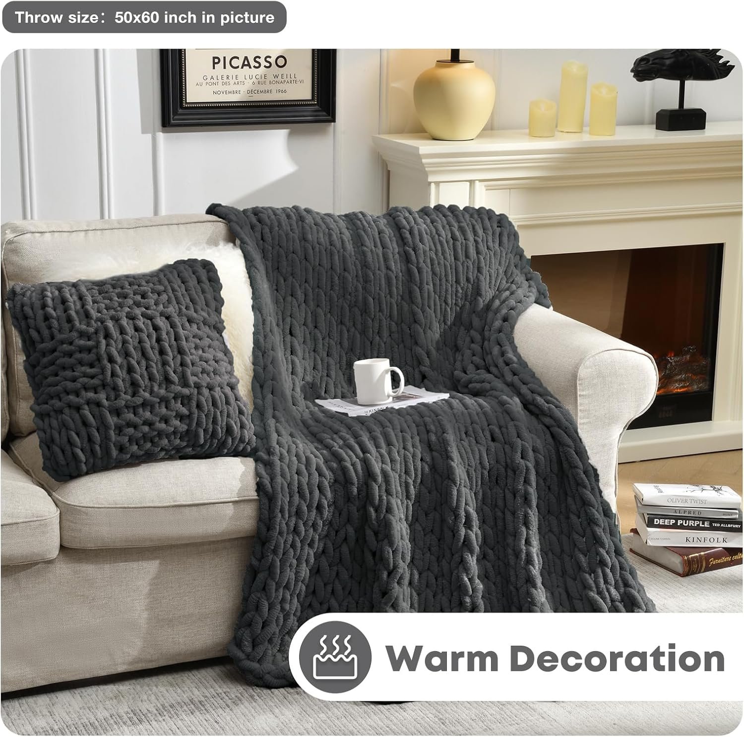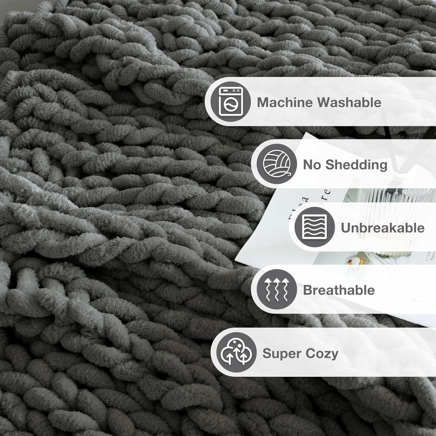 1 review for Soft Chunky Knit Blanket, 40X50 In Handmade Thick Chenille Yarn Throw without Shedding & Raveling, Aesthetic & Cozy Home Decor with Couch Sofa Bed, Gift Pack, Dark Grey