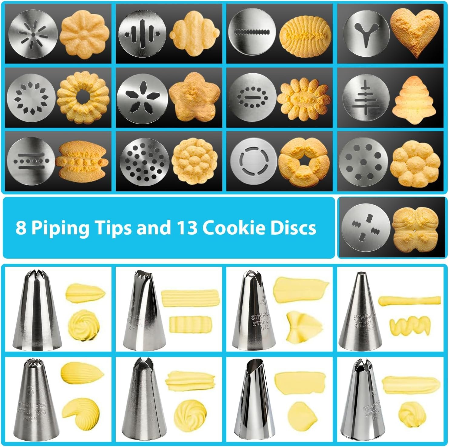 Versatile Cookie Press Discs: cookie baking gadgets Includes 13 different discs and 8 piping tips that allow you to create a variety of cookie shapes and frosting designs