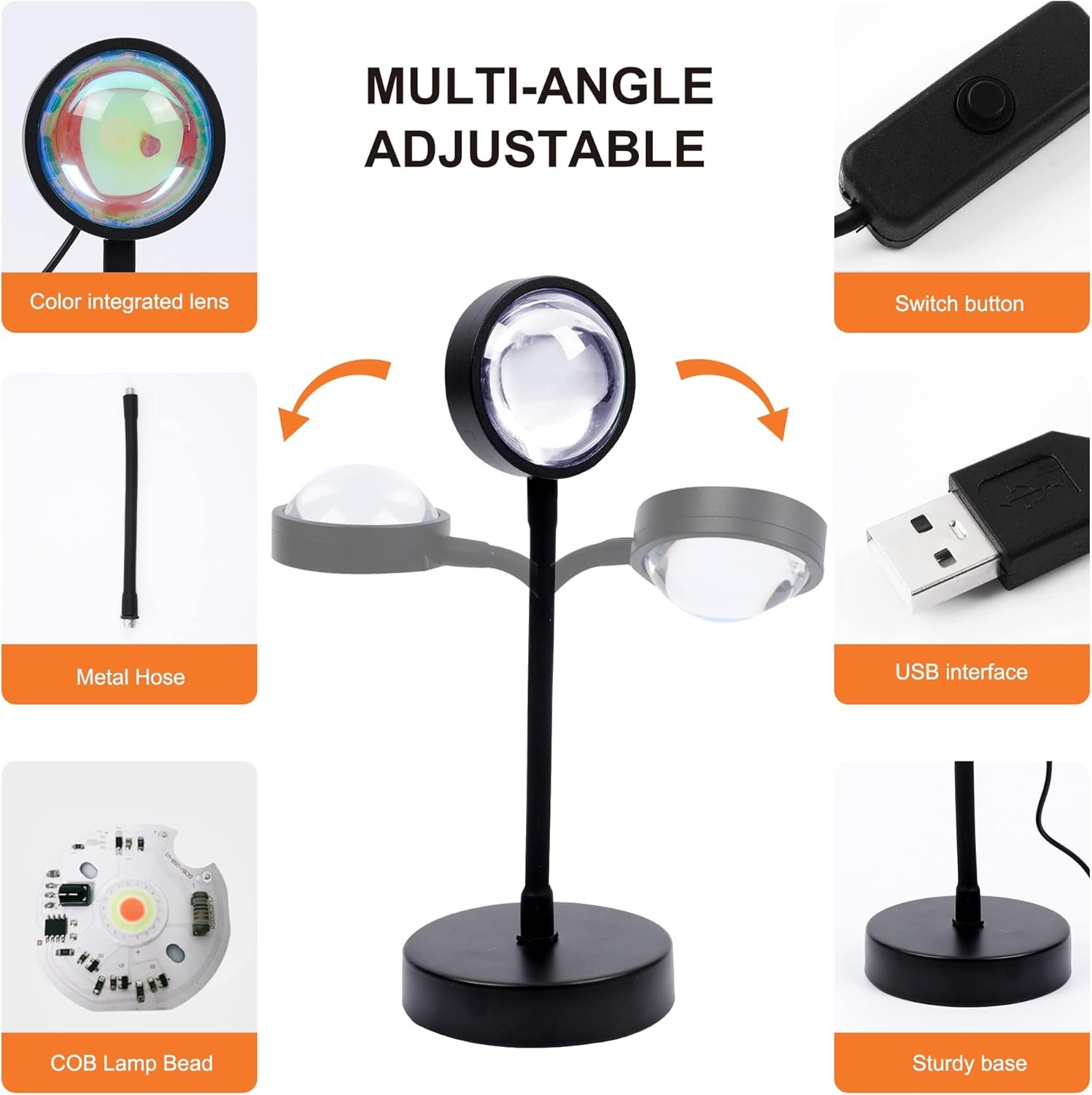 ❤ 【Multifunctional use scene, Romantic Visual Experience】 This sunset projection lamp uses USB power supply, which is very convenient to carry and use. It can be used as home lighting, photo background, warm atmosphere, live broadcast, wedding atmosphere, gift, night light lamp, etc. Multifunctional use.