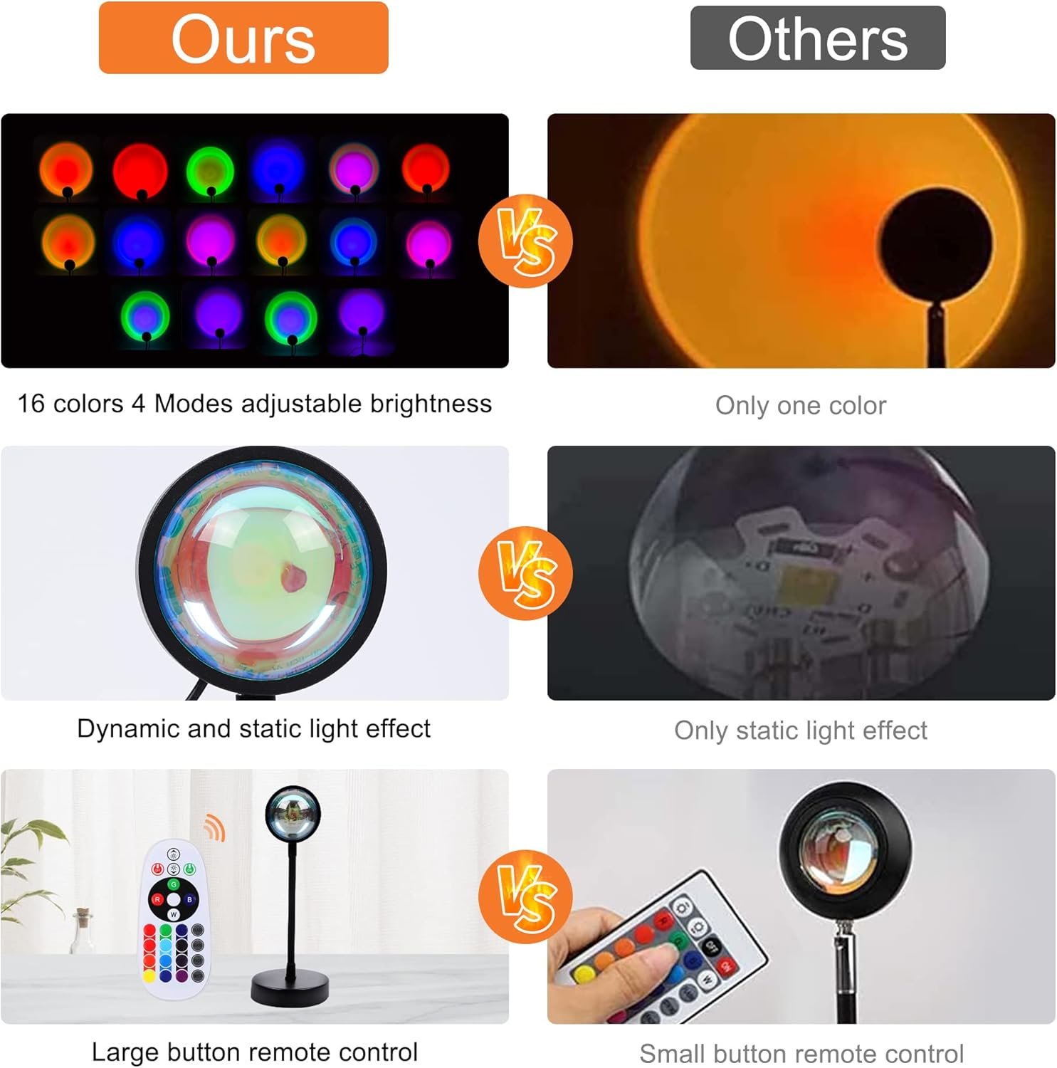 ❤【Remote control 16 color change modes】 Remote control allows you to easily control various modes of sunset light, RGB 16 color changes, RGB jump, RGB gradient, RGB flashing. Make your life more comfortable, with a comfortable and romantic environment at your fingertips.