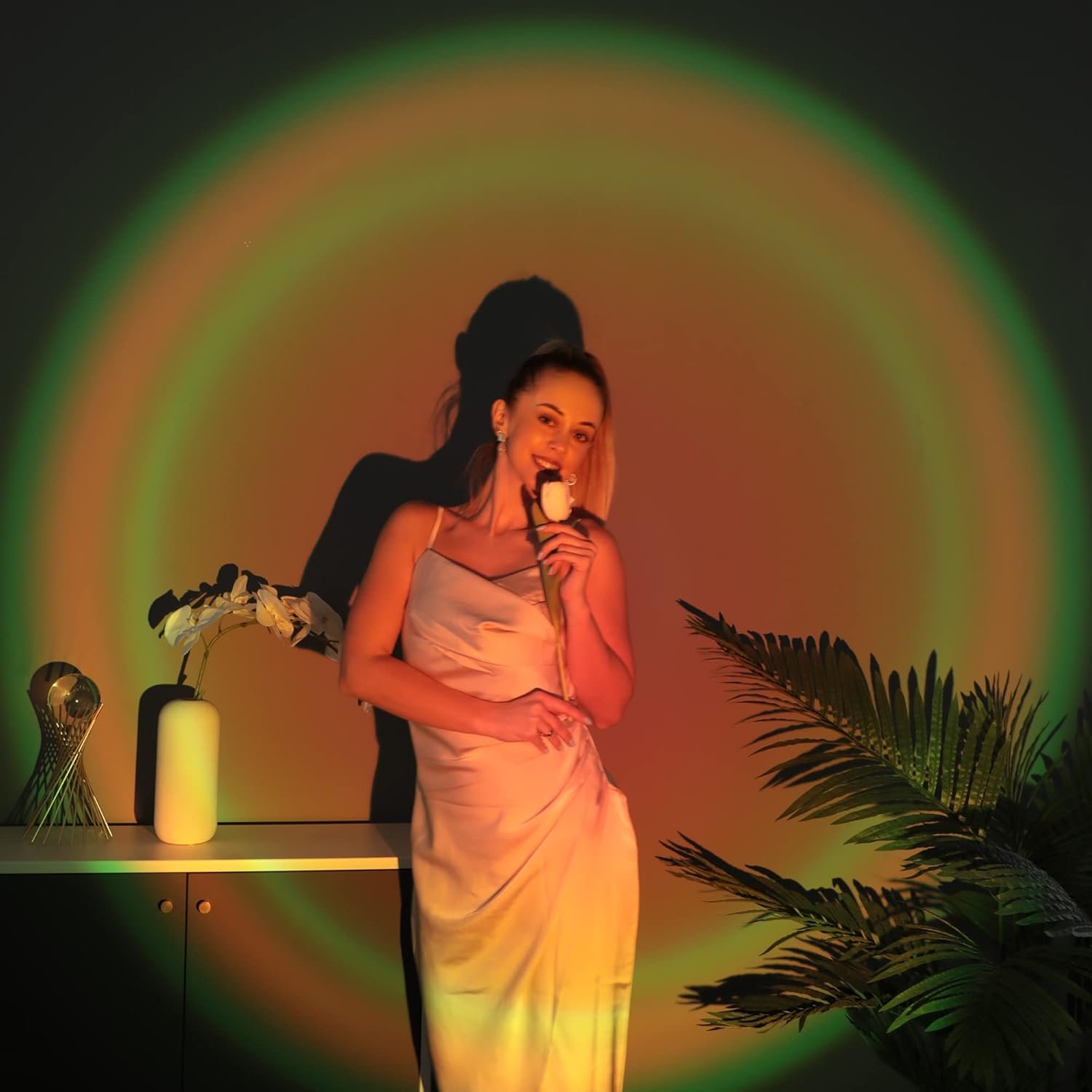 ❤【sunset lamp】The sunset projection lamp can project amazing circular lights on the walls, ceiling and floor. You can have a variety of dreamy ideas to create romantic beach sunset colors, deep oceans, and colorful rainbows, which you can feel in the living room/balcony These dreamy feelings