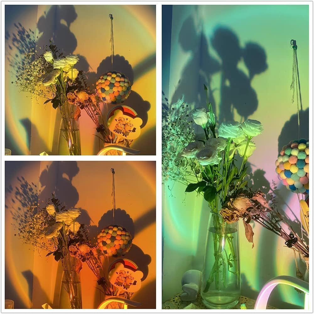 【Adjustable Angle Rainbow Sunset Projector】The sunset lamp projector head can be rotated 180 degrees, it can produce different lights from different angle, with 16 adjustable colors which can create a brilliant atmosphere, enjoy the beauty of different colors.
