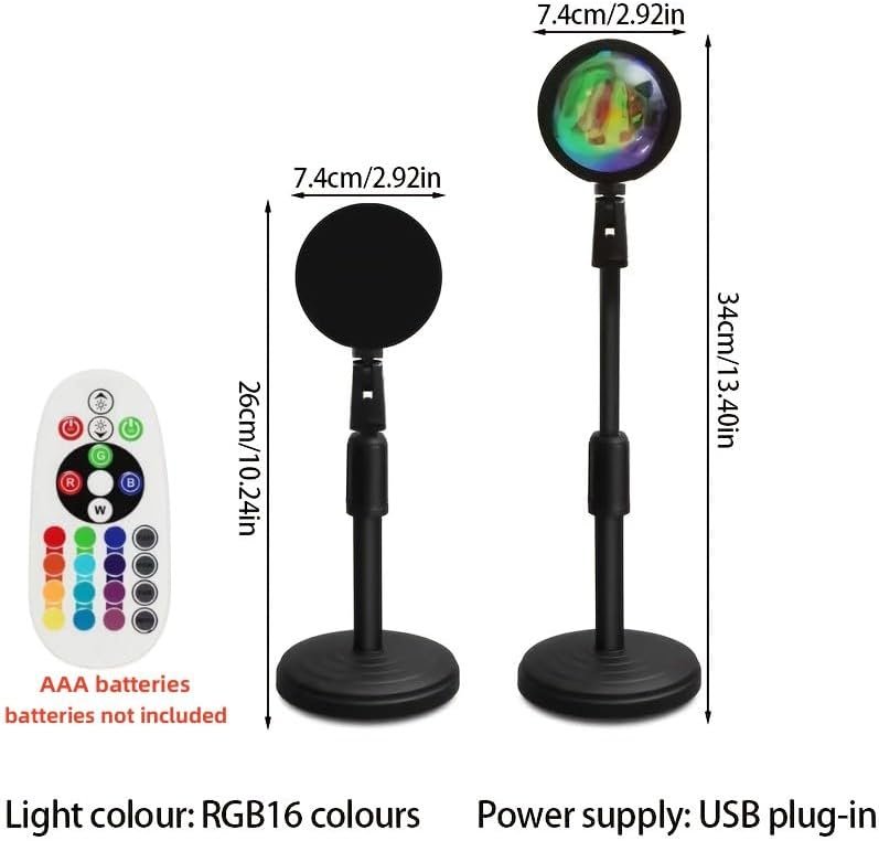 【Versatile Lighting Options】: The Sunset Lamp Projector features 16 vibrant RGB colors and 4 dynamic modes including jump, strobe, gradient, and smooth transition, allowing you to easily customize your lighting experience with the included remote control.