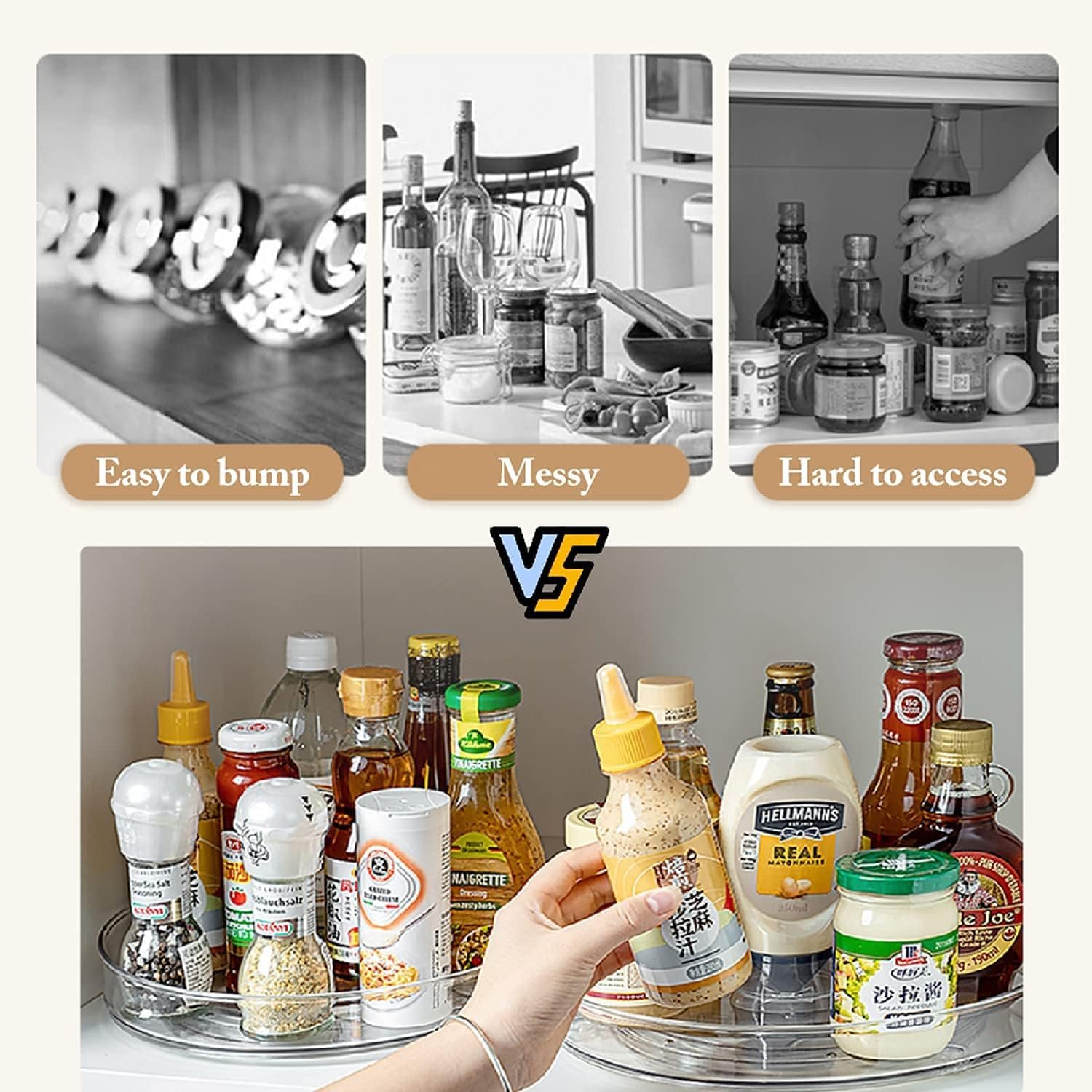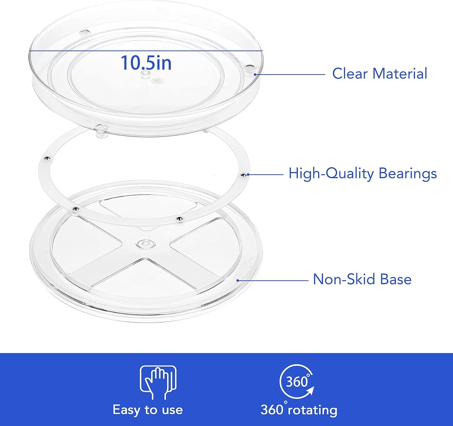 Large Capacity : Size and capacity meet daily needs, increase turntable capacity, which is convenient to access what you what. The set of 2 transparent 10.5″ deep turntable cabinet organizer provides storage and organization for the kitchen, outdoor dining room table, or countertop.