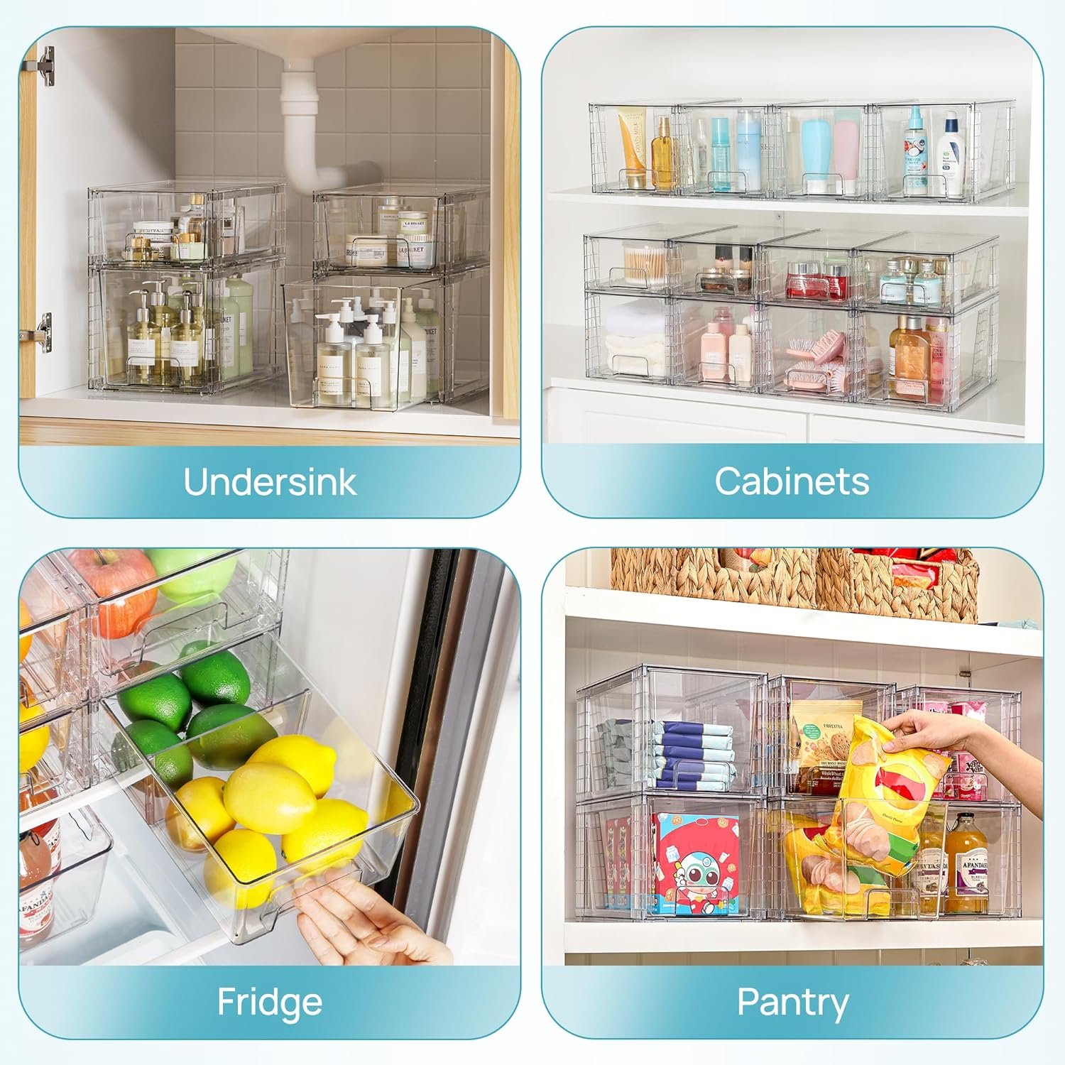 Multi-use Organizer Drawers–Suitable for all kinds of places in the home, you can use these clear storage drawers for organizing snacks, drinks, facial masks,cosmetics,makeup,medicine,baby bottles and other daily items in pantry, cabinets, bathroom closet, bathroom undersink.