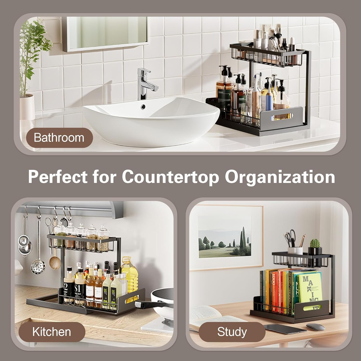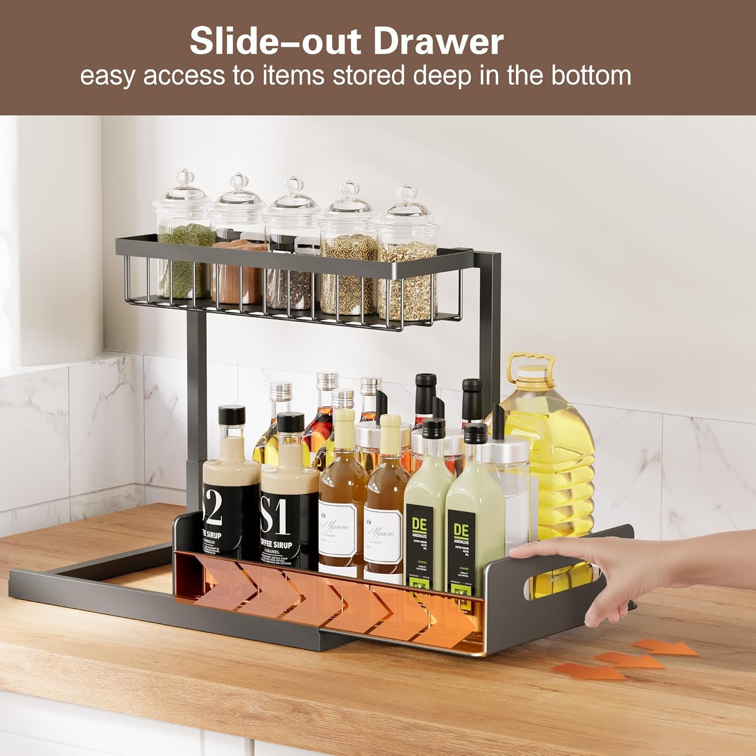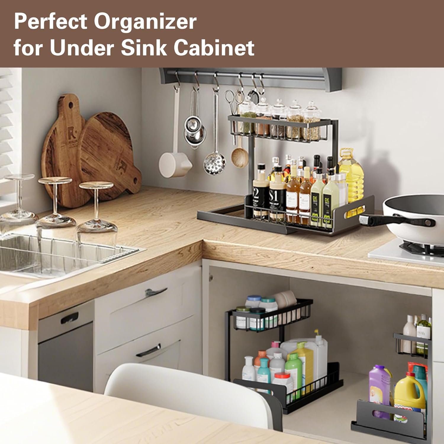 VUSIGN Under the Sink Organizer, 2-Tier Pull Out Cabinet Organizer, Metal Slide Out Storage for Bathroom Kitchen, 1 Pack, Black