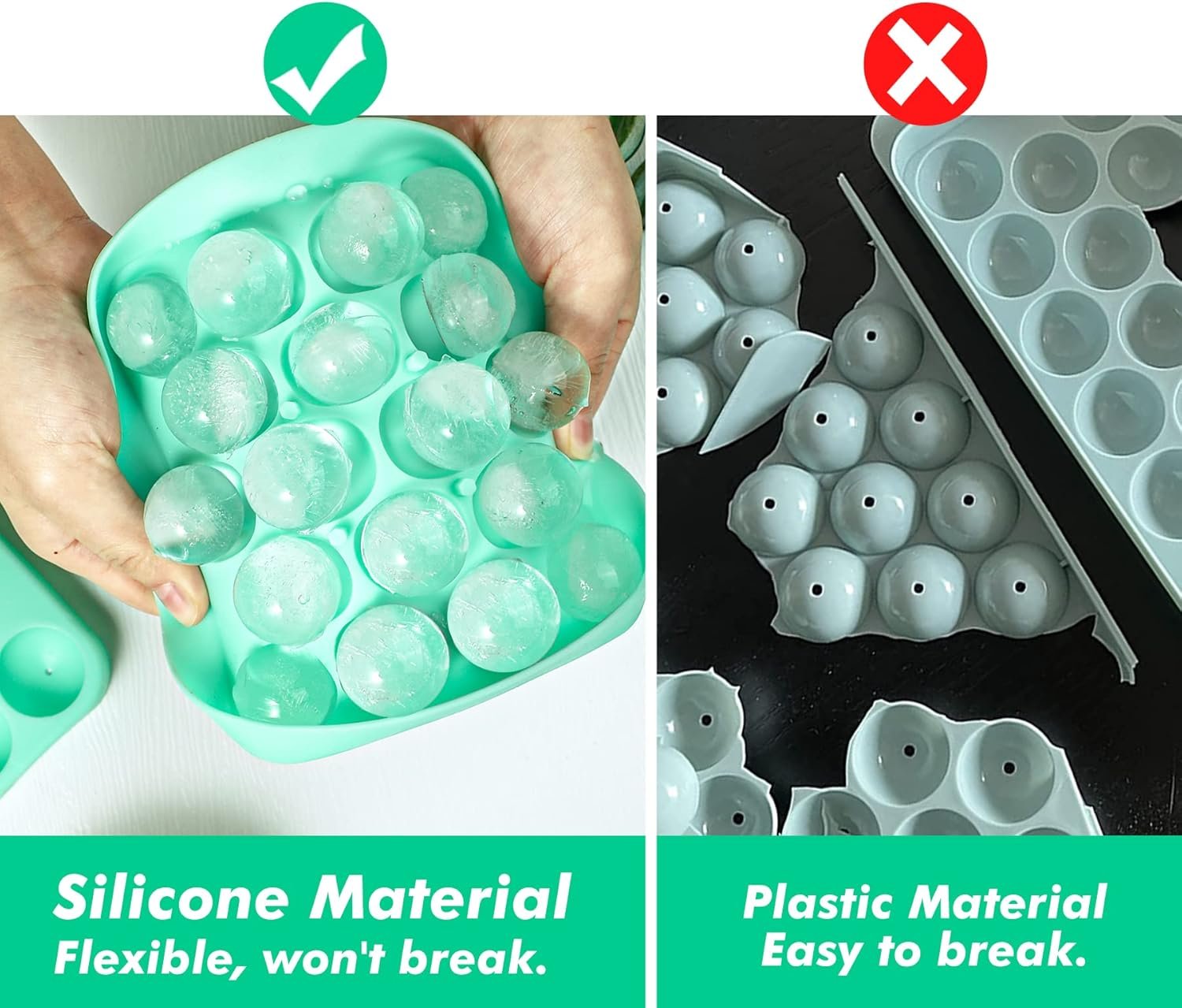 EASY TO RELEASE – Unlike the plastic ice cube tray, silicone ice mold is flexible, simply Twist & Twist the silicone ice cube tray. Put the tray up-side- down then you will have perfectly round ice cubes!