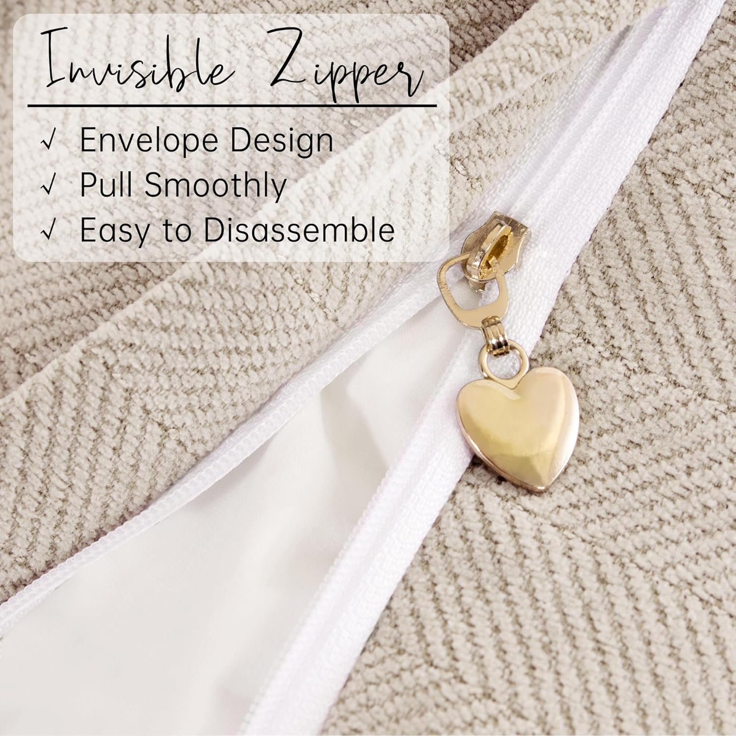 ZWJD Pillow Covers in size 18” x 18” (set of 2, color beige) are QUALITY! 🙌🏻 Every little detail of these pillow covers is perfect, even down to the small dainty zipper with a gold heart zipper pull. These may be a little higher priced, but trust me—the quality is there. 💛I would definitely purchase these again, and I’ve already been looking at the other colors. The fabric is nice and soft, and they look amazing on both the couch and the bed.